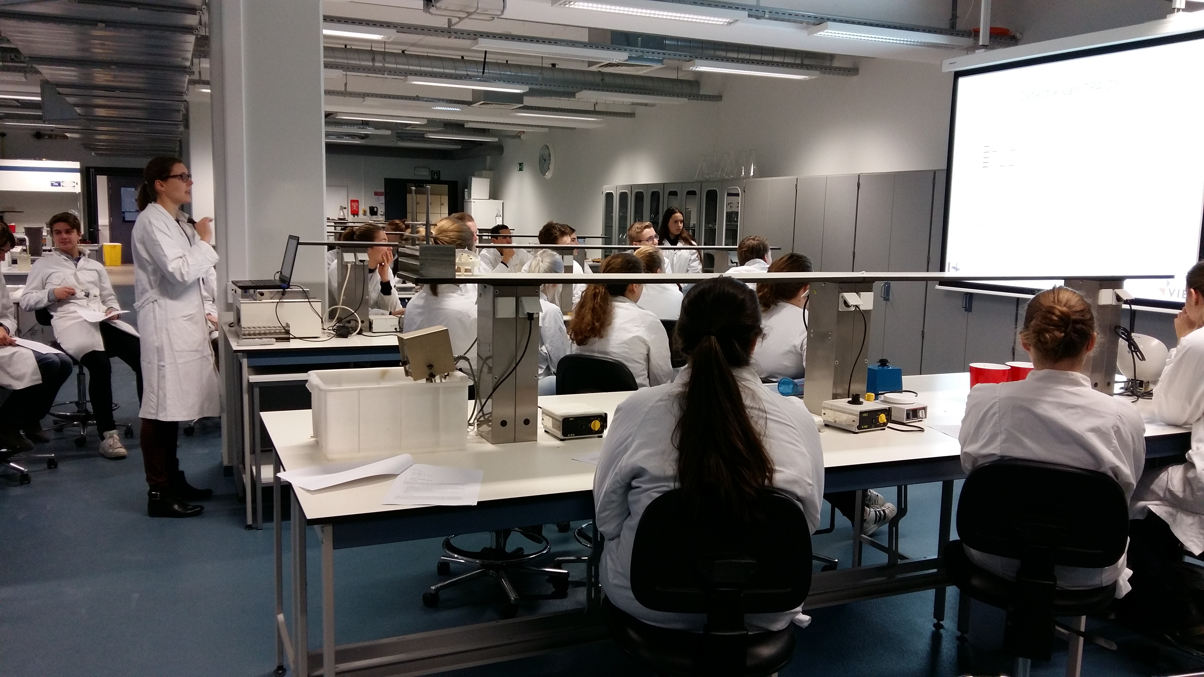 Op donderdag 9 februari 2017 namen leerkrachten Nathalie Mauro en Paul Verlodt de leerlingen van 6 Ewi, EWe, LWi, LWe, MTWe en WeWi mee naar het labo biochemie/biotechnologie van de UAntwerpen. Onze leerlingen konden zelf een DNA – gelelektroforese uitvoeren, maakten oefeningen op stamboomproblemen + kregen een deskundige uitleg over het wetenschappelijk onderzoek naar de ziekte van Alzheimer. Een bijzonder leerrijke en interessante dag!