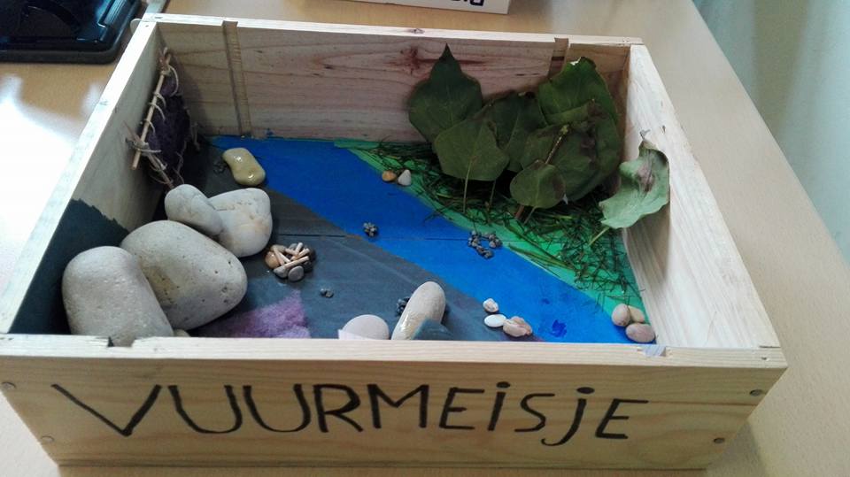 Zo maakte Luna Bouckaert (3HWt) bovenstaand kunstwerkje bij het boek ‘Vuurmeisje’ van Dirk Bracke.