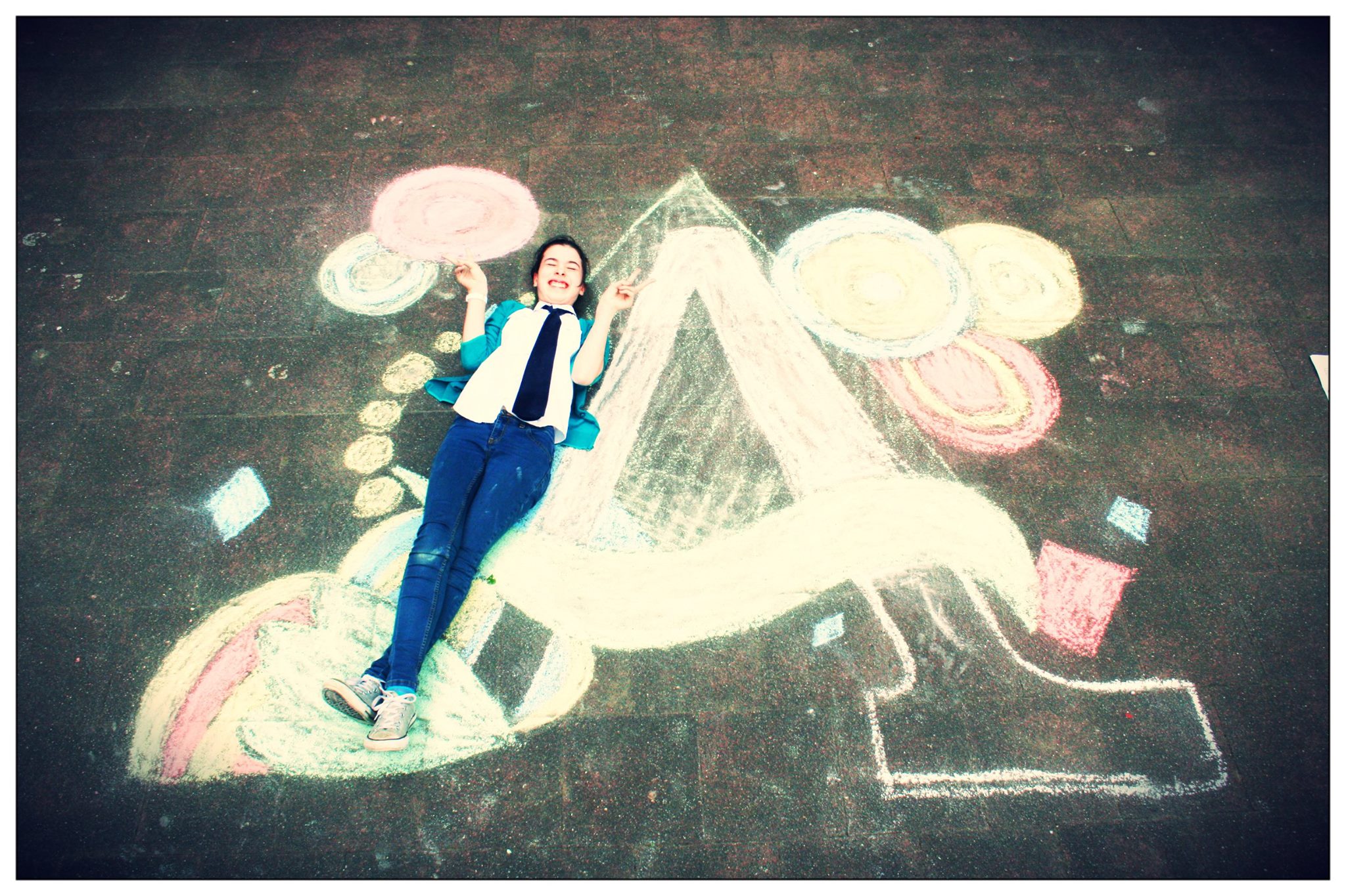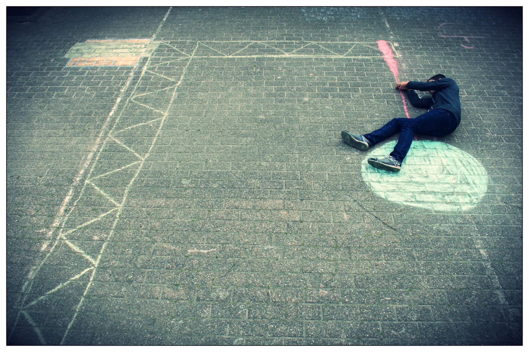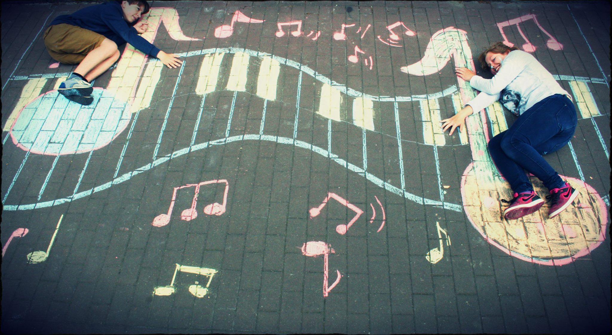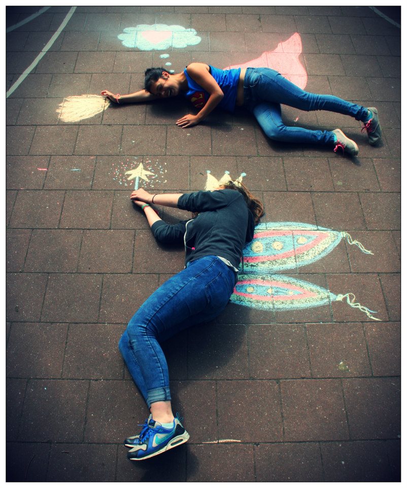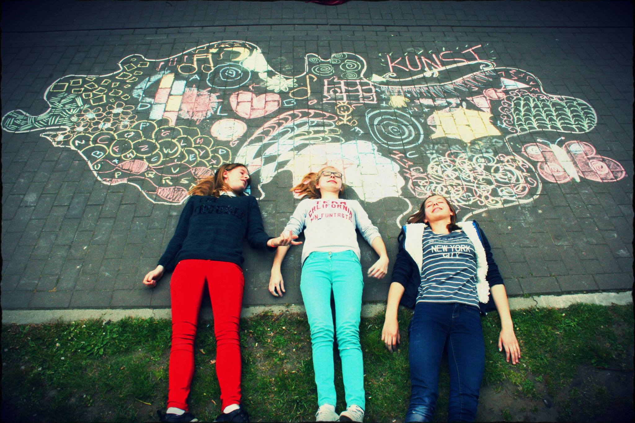 Tijdens de lessen onder leiding van mevr. Kooijmans mochten de tweedejaars zich uitleven met stoepkrijt.