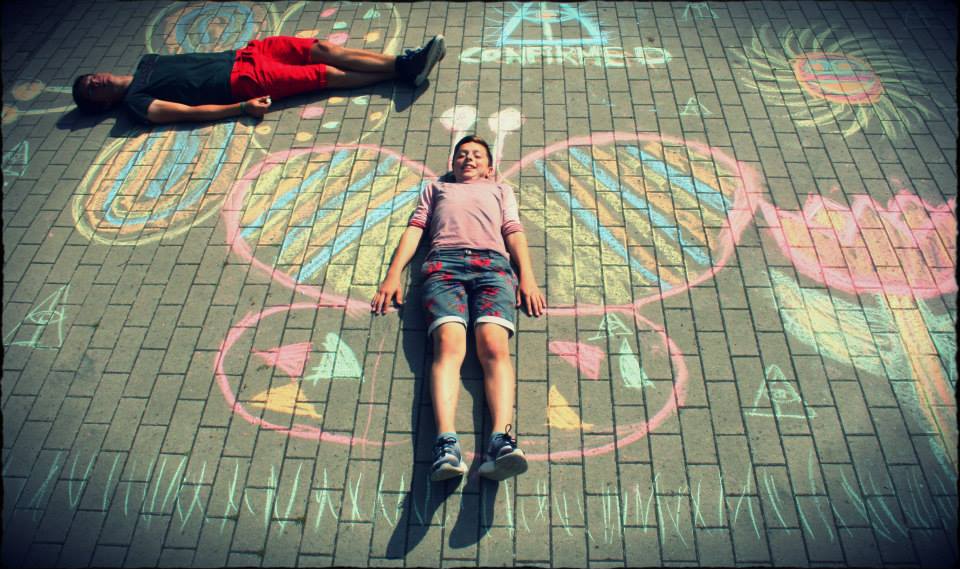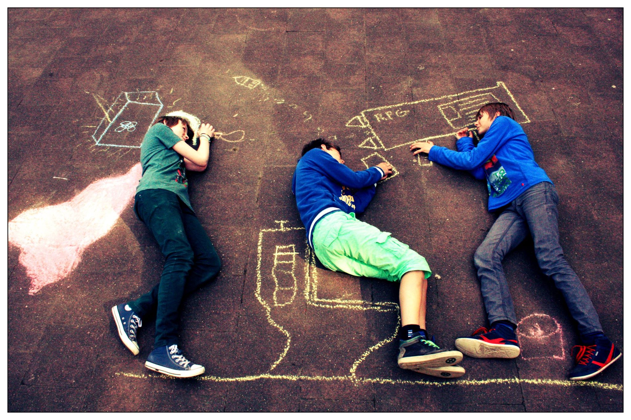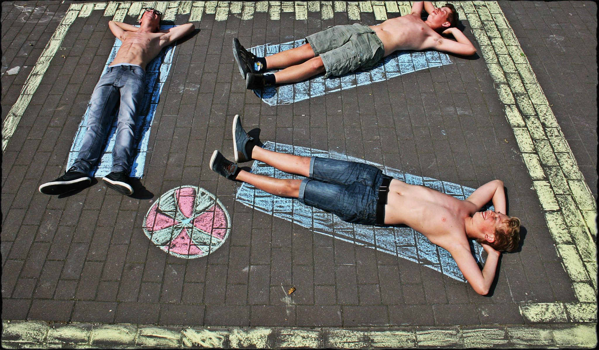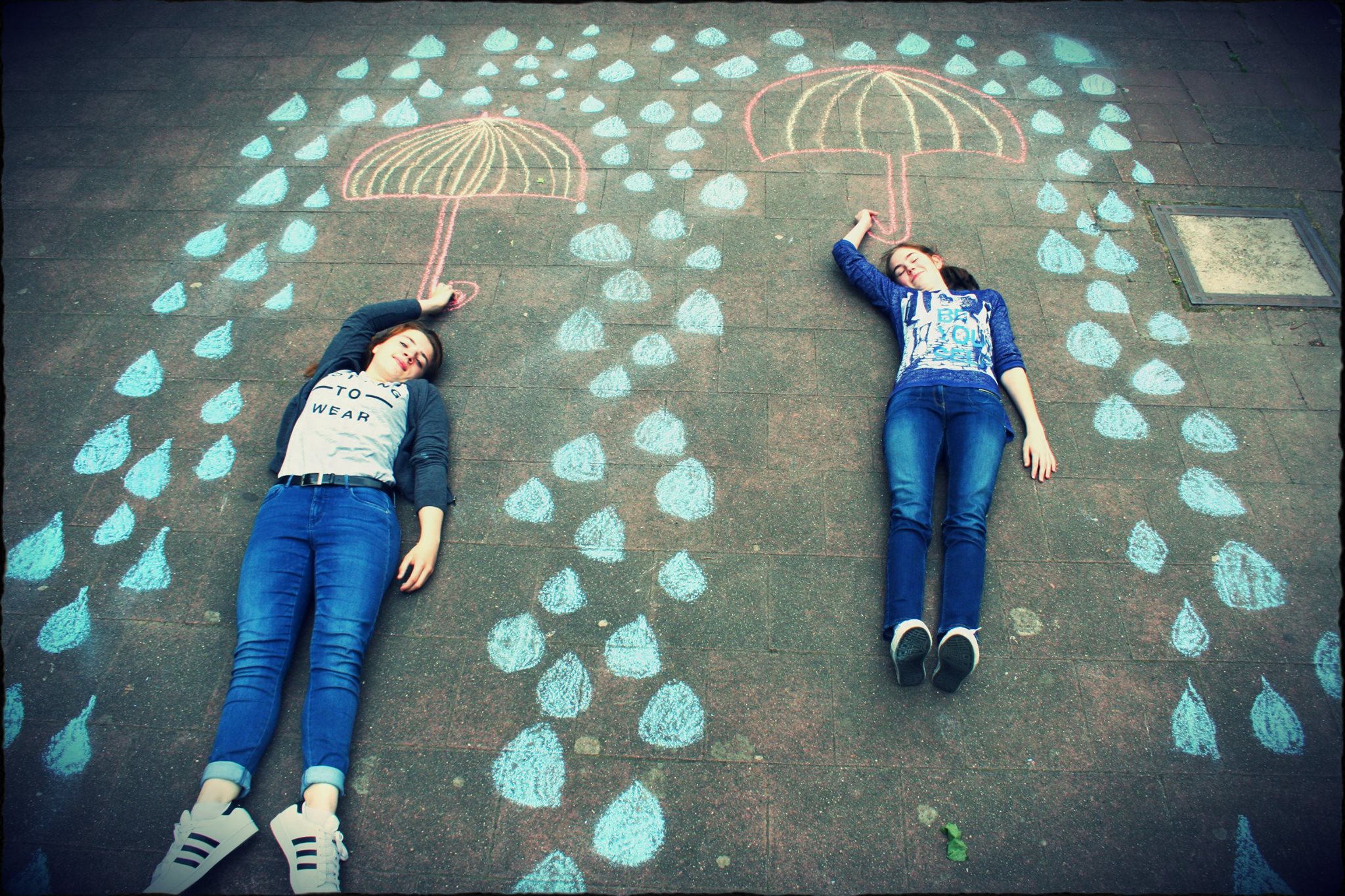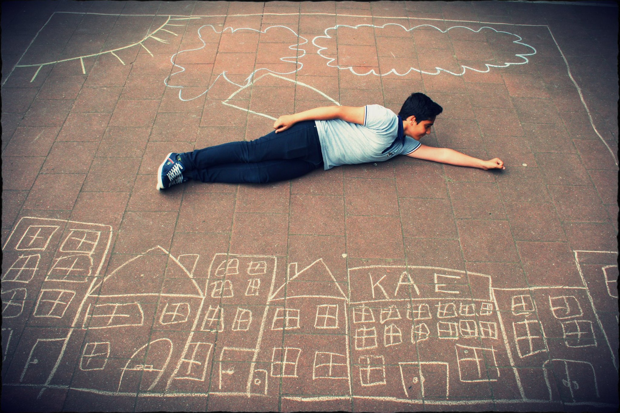 Tijdens de lessen onder leiding van mevr. Kooijmans mochten de tweedejaars zich uitleven met stoepkrijt.