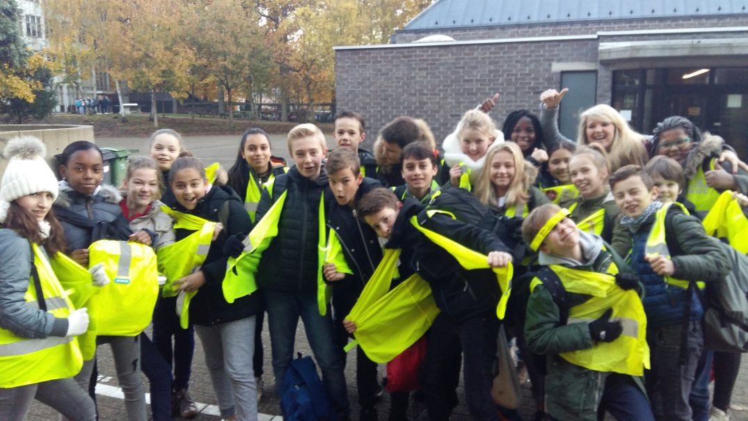 De actie van de leerlingenraad mist zijn effect niet. Mevrouw Van Riel sloot een weddenschap af met haar klas. 1B kwam voltallig in fluo naar school. Als tegenprestatie krijgen de leerlingen een kleine beloning.