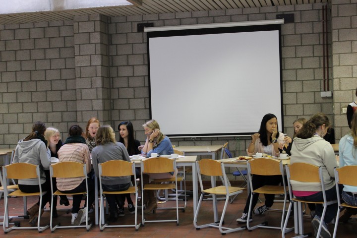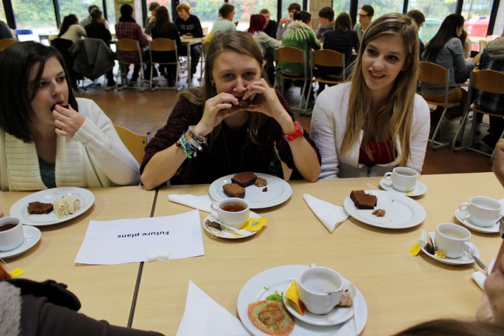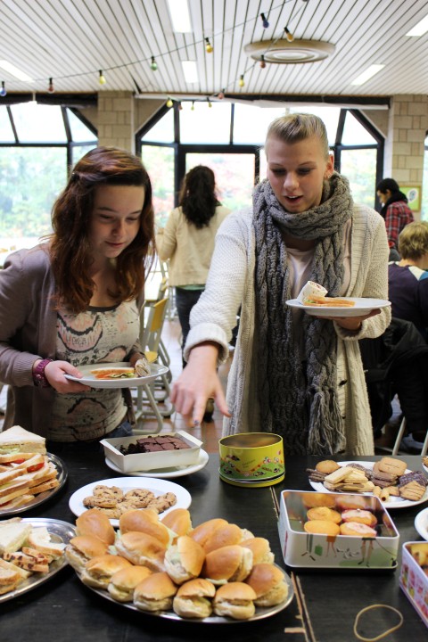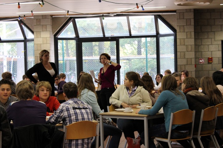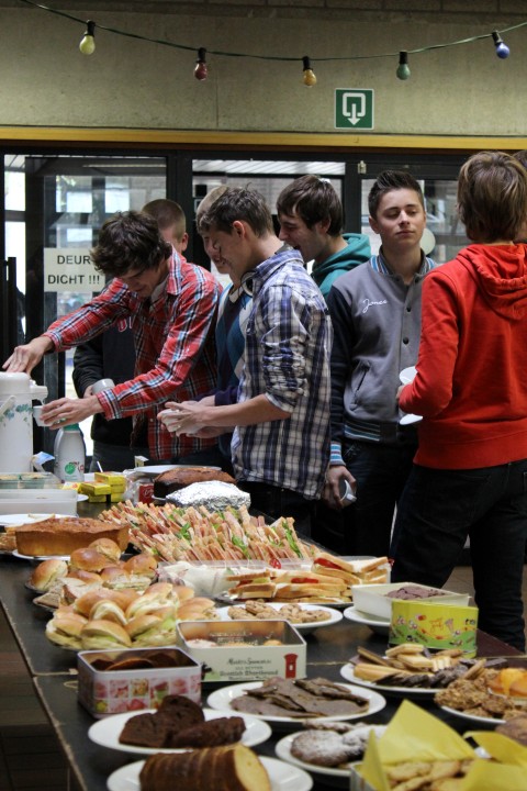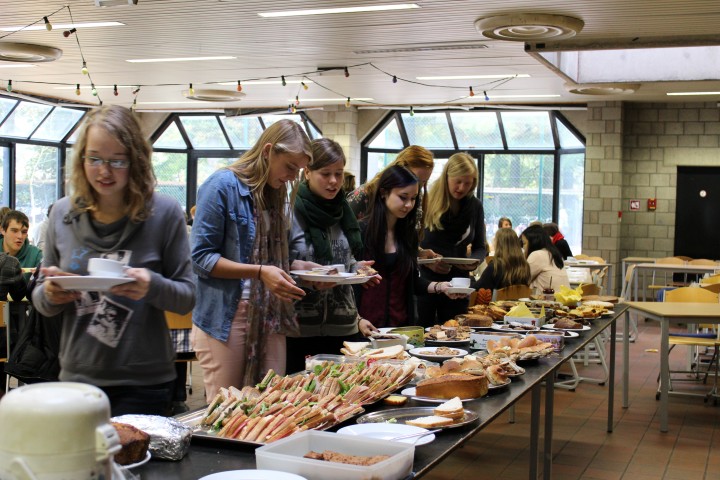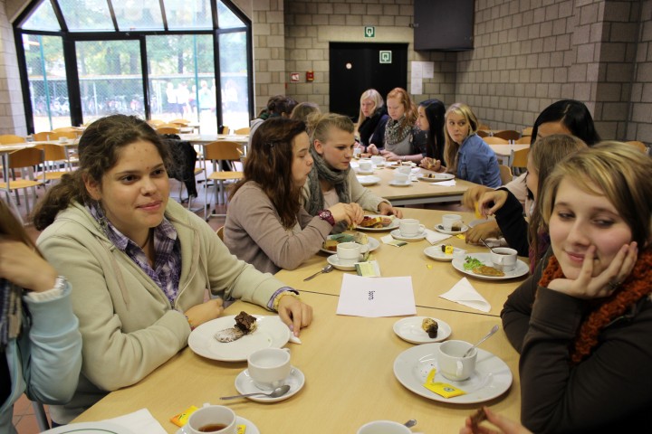 De laatste vrijdag voor de herfstvakantie mochten de leerlingen uit het zesde genieten van heel wat lekkers. De voorwaarde was dat ze alles op z’n Engels deden. Er werd gezorgd voor kilo’s Engelse gebakjes en liters Engelse thee. Uiteraard was ook de voertaal Engels.