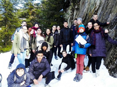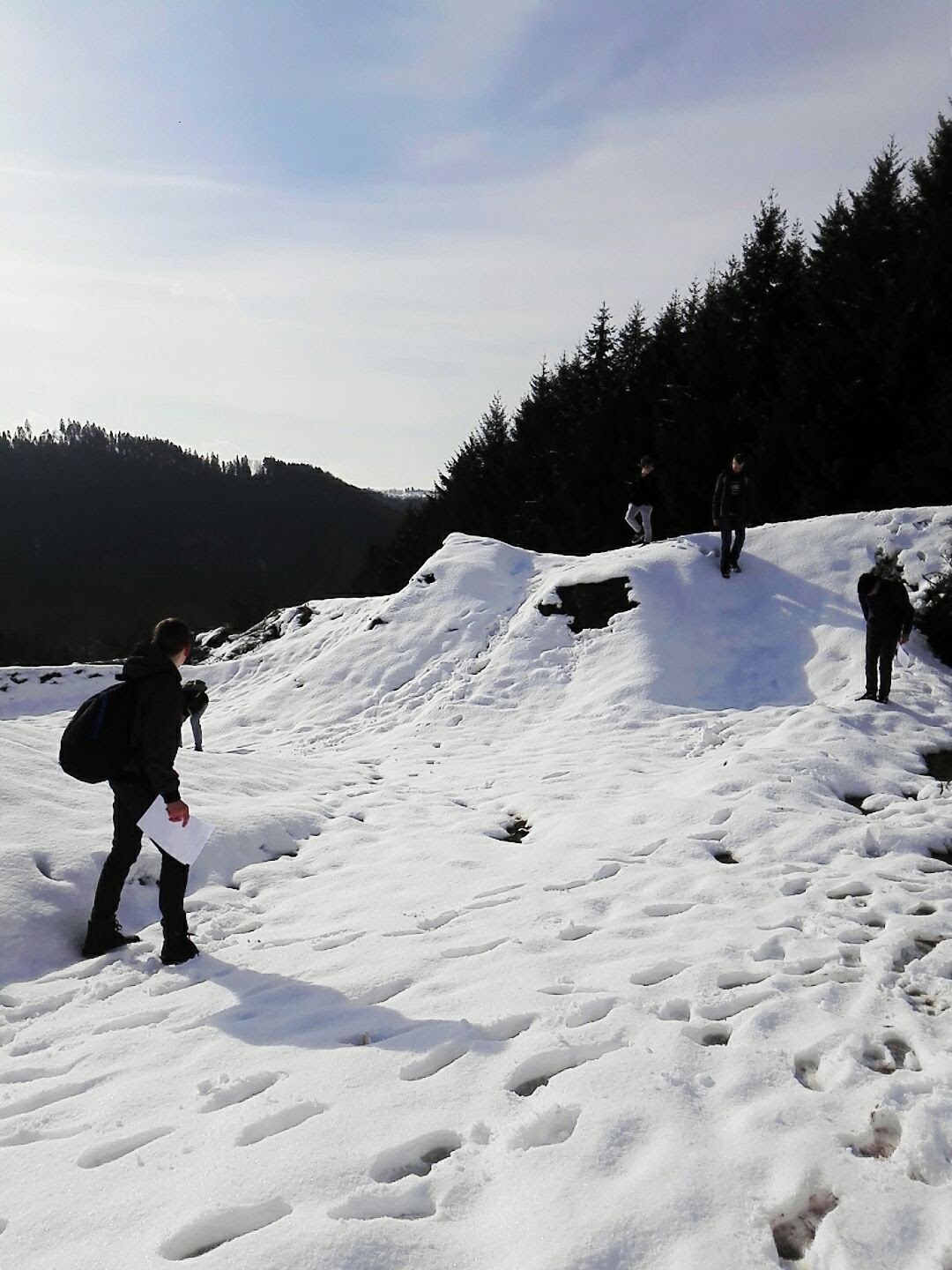 Ondanks de sneeuw kon de oriëntatieloop wel doorgaan. Zonnig weer en prachtig uitzichten maken het wandelen wat minder zwaar.