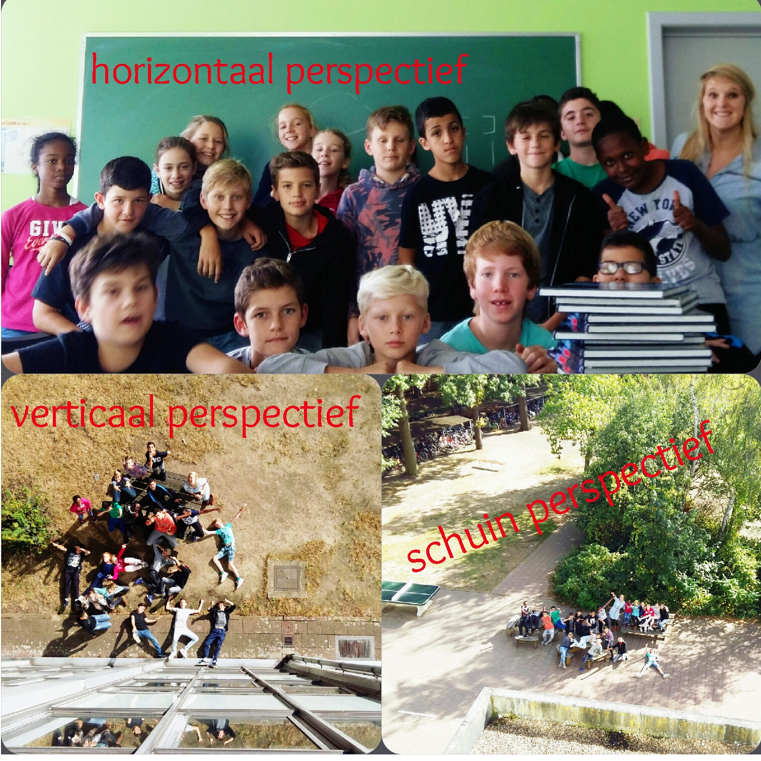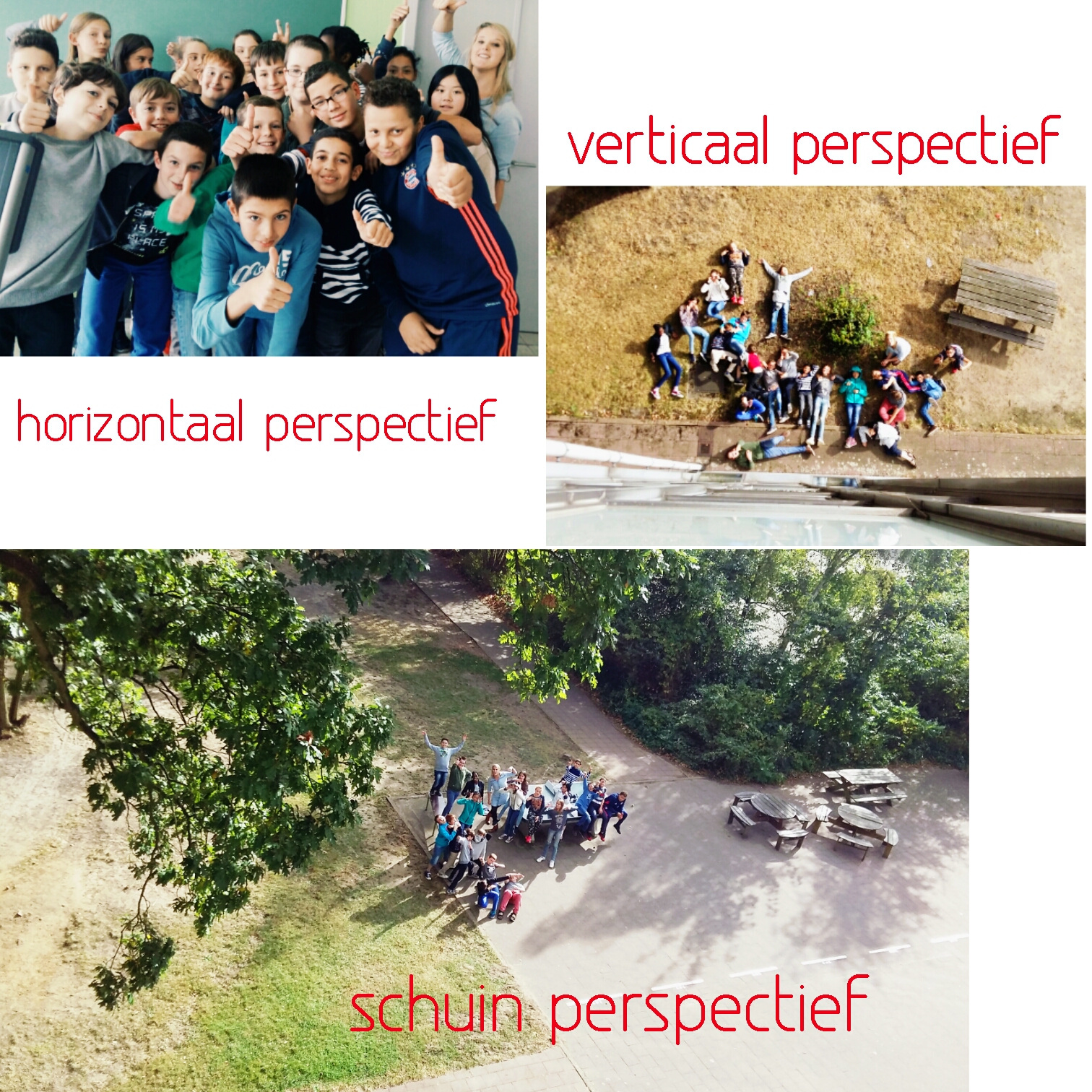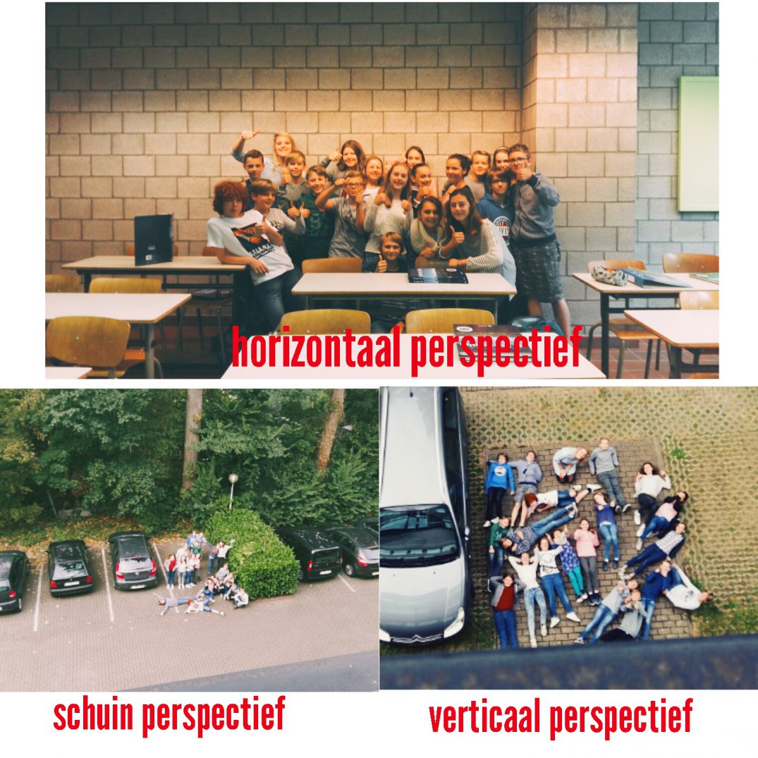 Tijdens de les aardrijkskunde leerden de leerlingen over de verschillende perspectieven (verticaal, horizontaal, schuin) en we namen de proef op de som door zelf enkele leuke foto’s te nemen. De leerlingen van 1a, 1b en 1g vonden het alvast een leuke opdracht.