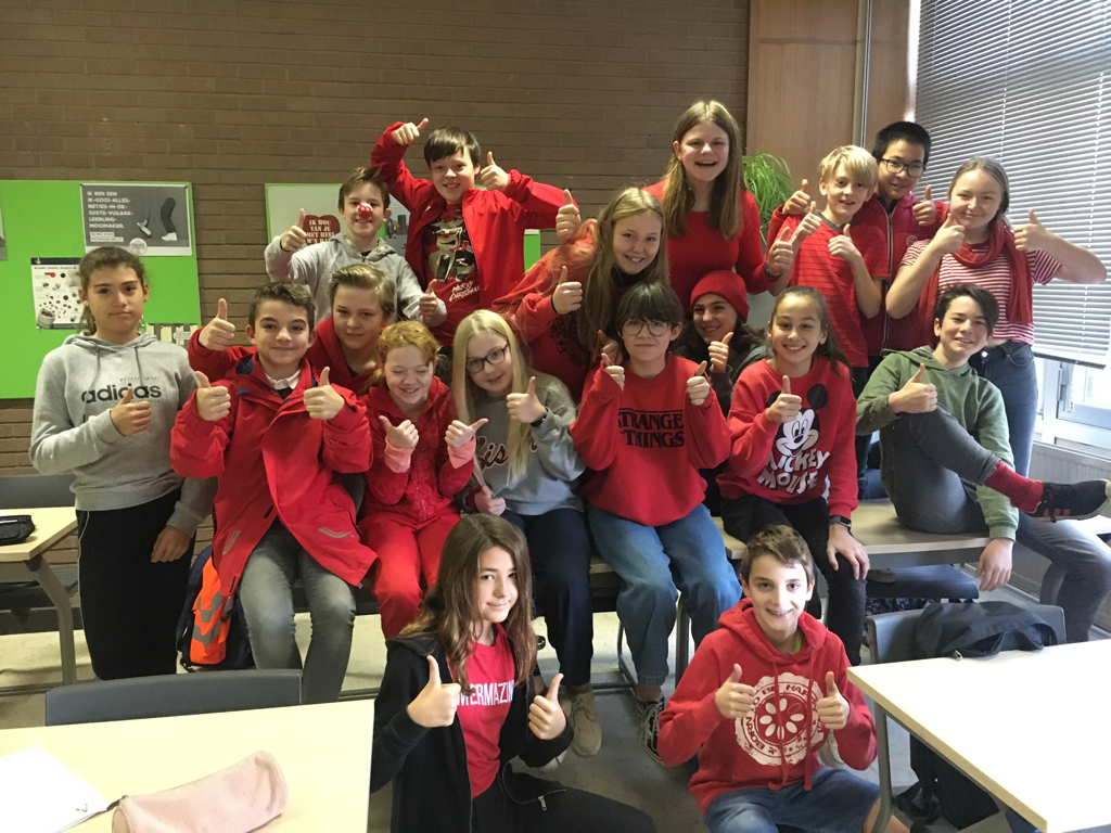 Op Rode Neuzen Dag werd opgeroepen om in het rood naar school te gaan. Een oproep die ook op onze school massaal werd opgevolgd. En … oh ja, de sint kwam ook langs (uiteraard in het rood).