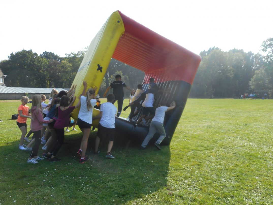 Ook dit jaar kwam de organisatie V-Formation bij ons op school langs om de sportdag voor de leerlingen van de eerste graad te verzorgen.