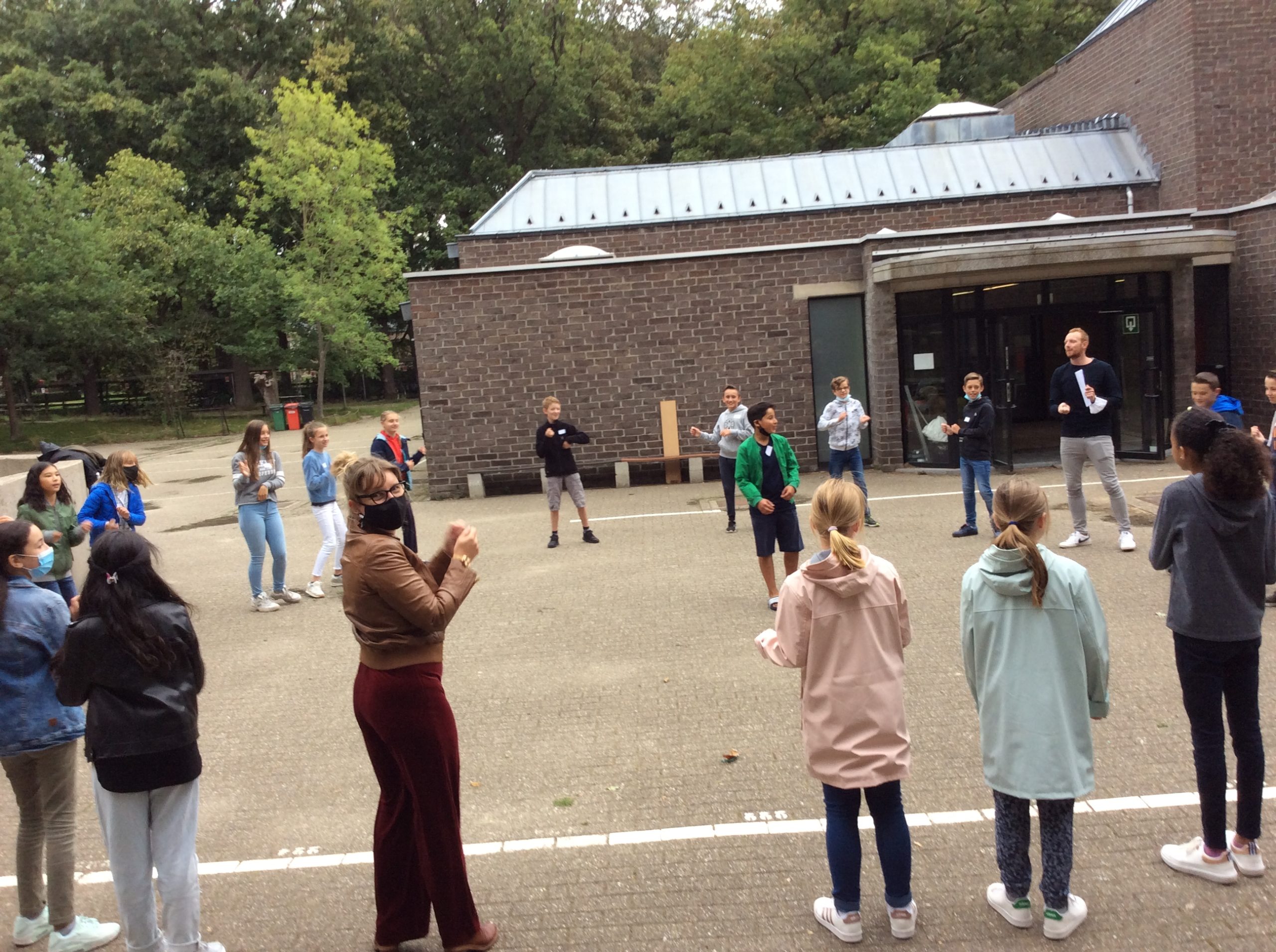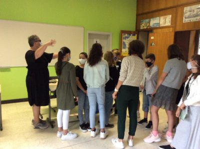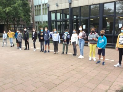 De leerlingen van het eerste jaar kwamen de laatste woensdag voor de start al eens op school voor een voormiddag vol corona-proof kennismakingsactiviteiten in hun klasbubbel.